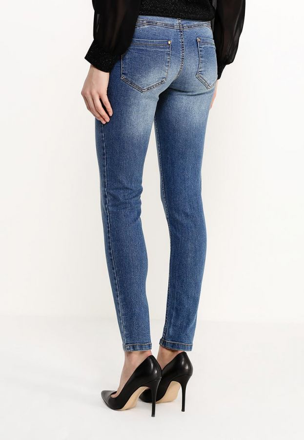 Зауженные джинсы от Ad-oro с низкой посадкой. Модель выполнена из стрейчевого денима с декоративными потертостями. Детали: застежка на молнию и пуговицу; три кармана спереди и два сзади; шлевки для ремня; стразы; молнии на штанинах внизу.