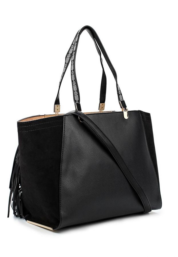 Сумка-сэтчел от River Island выполнена из сочетания искусственной кожи и искусственного нубука черного цвета. Модель дополнена золотистой фурнитурой и декором с названием марки. Детали: застежка на магнит, одно внутреннее отделение с текстильной отделкой, один внутренний карман на молнии и один внешний накладной карман. Не отстегивающийся и не регулируемый плечевой ремень. Сумку также можно носить за ручку.